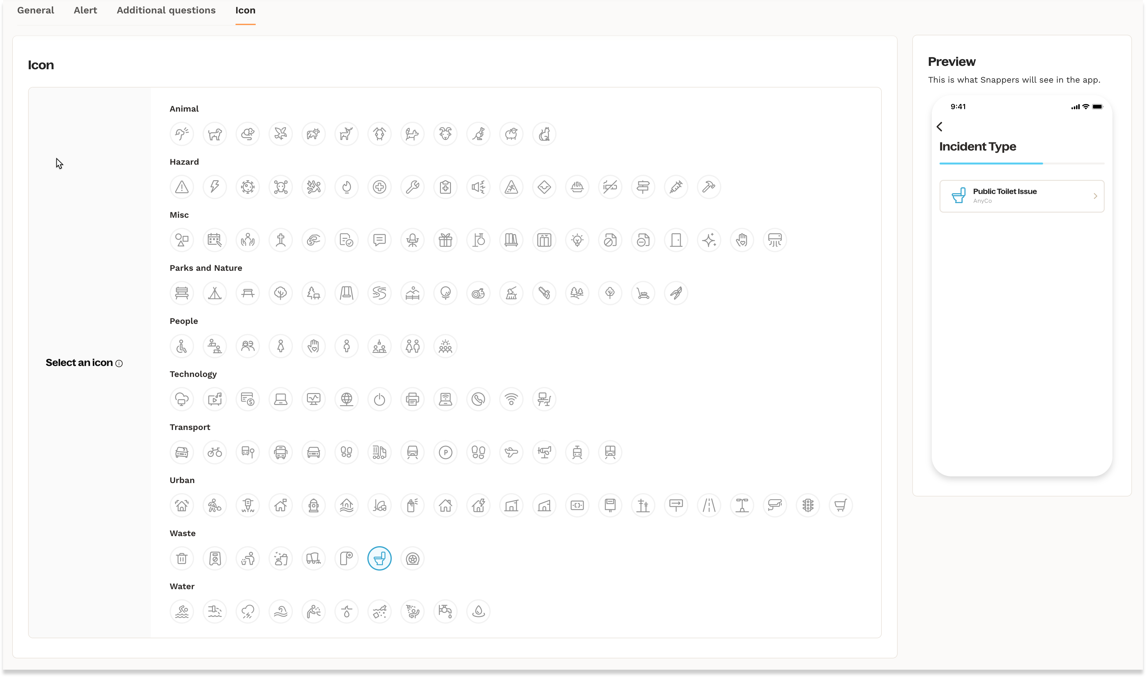 Once you select an icon, you can see how it will appear in the app or web form in the Preview panel. If you have a use case for a new type of icon, please get in touch with your Customer Success Manager to discuss.